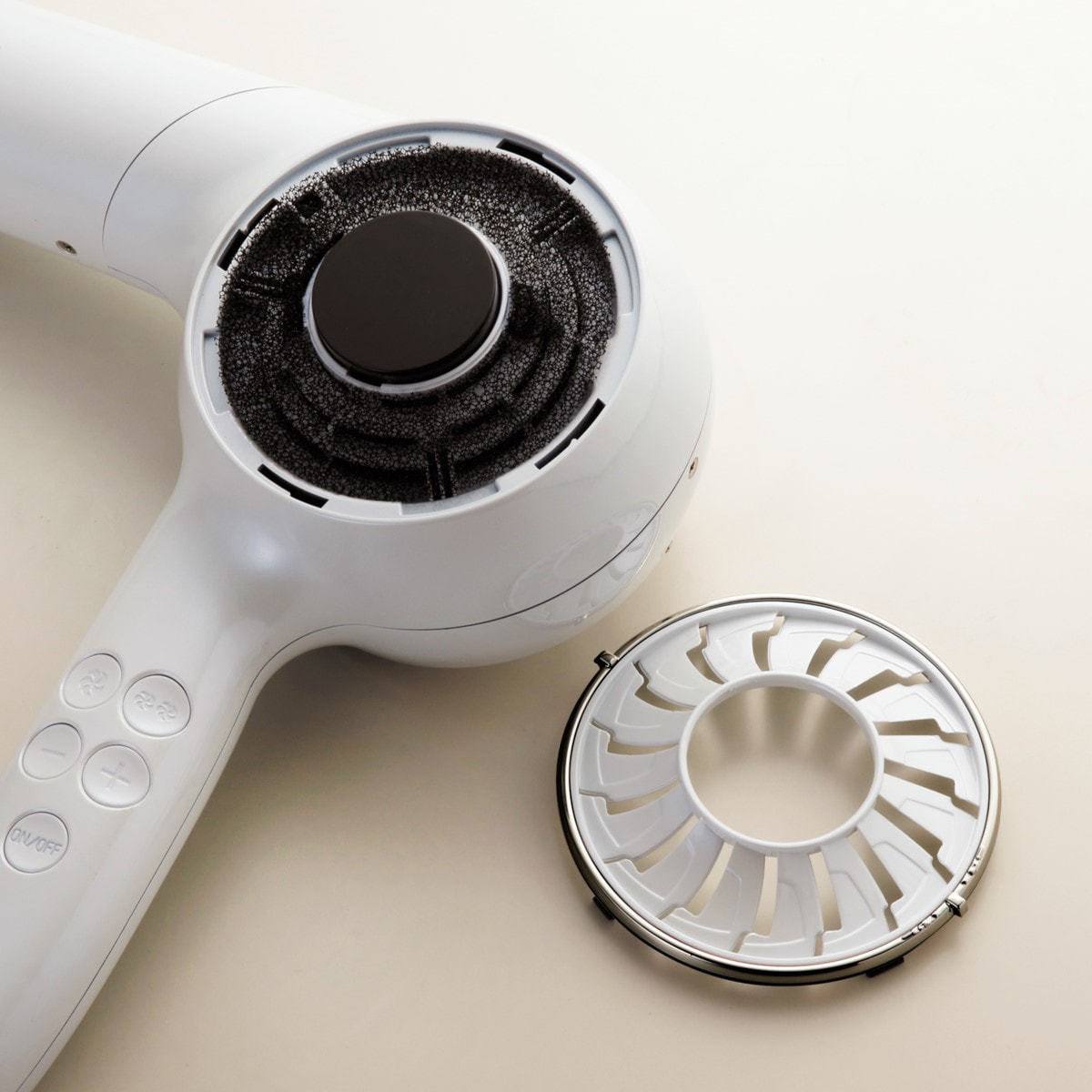 従来品の冷風温度より、-10℃の冷風を放出。 毛髪乾燥後の仕上げに冷風をあてることでキューティクルを瞬時に引き締め、ドライヤーの熱ダメージを緩和させながら髪のツヤ感を格段にアップさせます。